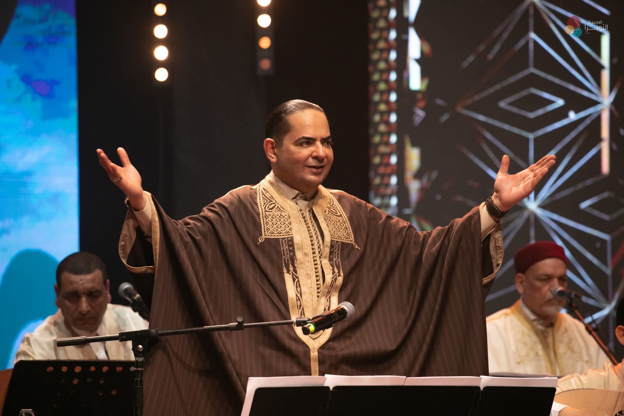 افتتح الجزء الأول من السهرة بمختارات من المالوف والموشحات، حيث قُدّمت مقطوعات مثل “بشرف سماعي” في طبع “رصد الذيل” و”البطايحي”، إلى جانب موشحات من بينها “قد بشرت بقدومكم ريح الصبا” و”يا بدر التمام”. كما تضمّن البرنامج وصلات تنقلت بين موازين “البرول” و”الهروب” وصولا إلى “الختم”، مع أداء أغانٍ من بينها “قدم المساء” و”بالهوى قلبي تعلق”.